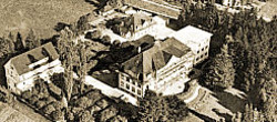 Der Spitalkomplex vom Jahre 1960 mit dem Absonderungshaus für Tuberkulose links (1931 erbaut / 1989 abgebrochen) inkl. dem erweiterten Altbau vom Jahre 1954.