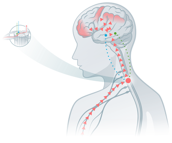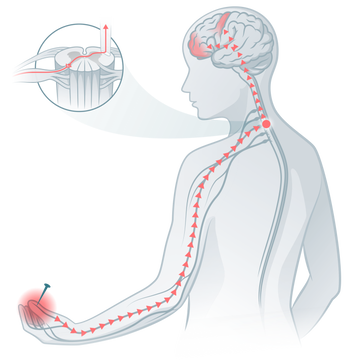Schmerz ist grundsätzlich ein natürliches und somit nützliches Warnsystem des Körpers. Durch unterschiedliche Reize, die mechanischer, thermischer oder chemischer Natur sein können, werden Schmerzrezeptoren im Gewebe aktiviert. Schmerzrezeptoren sind hierbei u.a. freie Nervenendigungen, die den Schmerzreiz an das zentrale Nervensystem weiterleiten. Als erste Schaltstelle fungiert das Rückenmark, über welches die Information in das Gehirn weitergeleitet wird. Dort findet eine Verarbeitung und Vernetzung statt. Auf dieser Ebene können auch Gedanken und Emotionen Einfluss haben. Die bewusste Wahrnehmung des Schmerzes erfolgt erst im Gehirn. Davon abzugrenzen ist die unbewusste Aktivierung des Schmerzrezeptors (=Nozizeption) und die Reizleitung vom Ort der Schädigung ins Rückenmark über den Nerven. Auch im Rückenmark und in untergeordneten Gehirnstrukturen findet eine Schmerzverarbeitung statt.